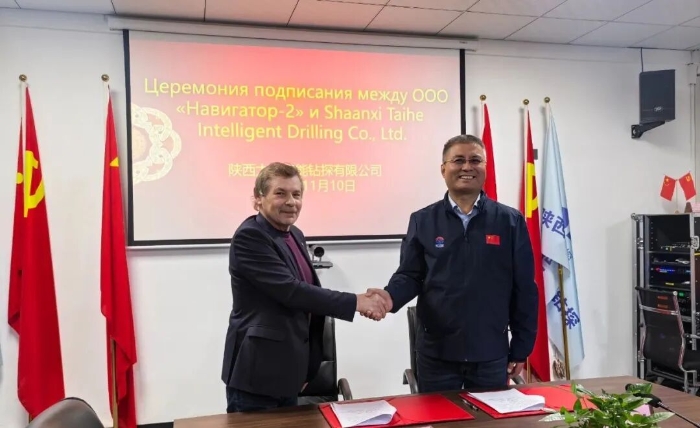 2025年1月23日俄罗斯东方研究院工业与矿业环境安全科学中心股份公司(以下简称“东方研究院”)与陕西太合智能钻探有限公司(以下简称“太合智能钻探”)进行国际化签约